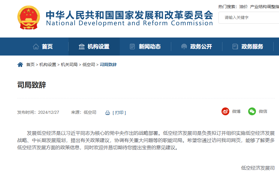 12月27日最新消息,国家发改委低空经济发展司已正式宣告成立。这一新成立的司局将肩负起推动中国低空经济蓬勃发展的重要使命。