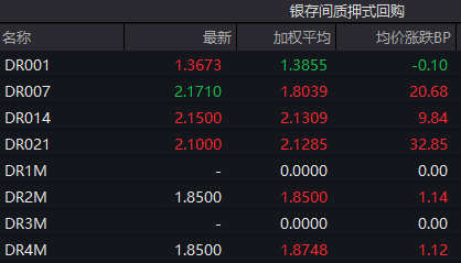 资金面方面,Shibor短端品种多数上行,其中隔夜品种上行0.2BP报1.388%,7天期上行20.7BP报1.74%,14天期上行12.1BP报2.157%,创2024年3月以来新高。银行间市场回购定盘利率多数下行,而银银间市场回购定盘利率则多数上行。