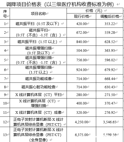 在大型检查项目价格下调的同时,广州还同步实施了国家和省的医疗服务价格政策,对36项检验类、麻醉类项目价格进行限价调整,进一步减轻群众医疗费用负担。