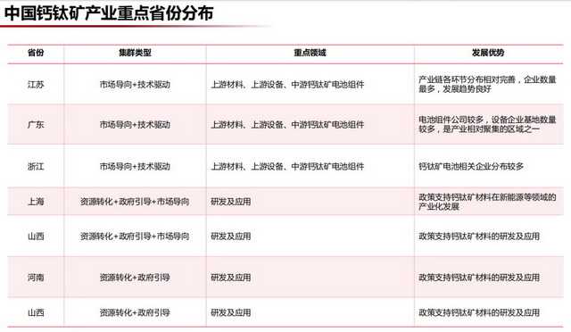 中国钙钛矿产业重点省份分布。资料来源:华盖资本