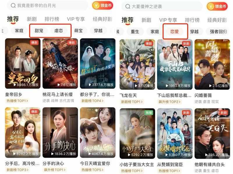此外,微短剧片名也需提升思想内涵,传递主流价值观,不得使用恶俗、恶趣味等违背公序良俗的片名。监管风声下,不少项目选择暂时不启动或调整计划,以避免损失。同时,平台仍积极掘金“总裁”剧,通过看视频赚金币、钻石等方式增加用户黏性。