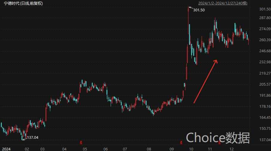 宁德时代强调,公司自上市以来始终高度重视投资者回报,坚持以稳定的现金分红回馈广大投资者。在2023年度分红方案中,公司进一步提高了分红比例,合计派发现金分红220.60亿元,并于2024年4月顺利完成。海通证券分析师余玫翰等人在12月11日的研报中指出,宁德时代连续两年实施特别分红,此次以三季报为基数进行分红,不仅增加了分红频次,更彰显了公司对股东回报的重视以及对未来财务和资金安排的信心。这一举措不仅向投资者传递了积极信号,也展示了公司的良好经营状况和强劲盈利能力,有助于稳定市场预期。二级市场上,自1月低点以来,宁德时代股价累计最大涨幅达到120%。