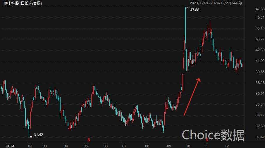 国内快递行业巨头顺丰控股于10月10日发布公告称,公司已启动公开发行境外上市外资股(H股)股票并在香港联合交易所主板挂牌上市的相关工作。为回报广大股东长期以来对公司的大力支持,公司计划在本次发行上市前对全体股东(即A股股东)实施一次性特别现金分红,拟向全体股东每10股派发现金股利人民币10元(含税),预计分红总额约为48亿元。同日,顺丰控股还发布了2024年中期分红方案,计划实施每股分配比例为每10股派发现金股利人民币4元(含税)的中期分红。该方案需经2024年第一次临时股东大会审议通过后方可实施,预计2024年中期分红总额约为19.2亿元,约占公司2024年上半年归母净利润的40%。群益证券赵旭东在10月19日的研报中指出,年中分红与特别分红双重方案的实施提升了市场信心。顺丰控股合计派发总额约为67.2亿元,根据10月10日收盘价计算,股息率约为3.4%。结合上半年已发放的股利,公司2024年全年股息率约为4.8%。二级市场上,自2月低点以来,顺丰控股股价累计最大涨幅达到52.39%。
