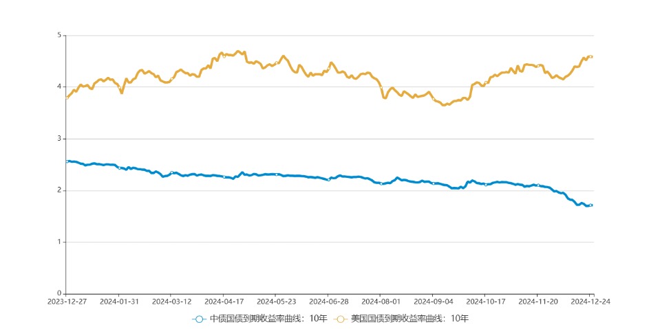 截至北京时间12月27日18时,中美10年期基准国债利差扩大至287.87bp,较前一周增加4.35bp。