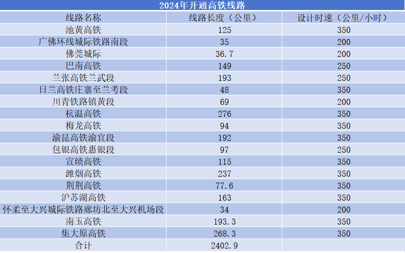 今年全国高铁投产线路达到18条,合计约2403公里。其中,12月内先后开通了荆荆高铁、沪苏湖高铁、南玉高铁和集大原高铁等四条高铁。国铁集团年初设定的目标是投产新线1000公里以上,而截至10月,全国铁路营业里程已超过16万公里,其中高铁超4.6万公里。