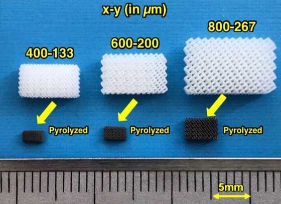 面对这一难题,研究团队通过不懈努力,成功开发出一种微架构、高性能负极的制备方法。他们利用3D立体光刻技术打印出由树脂制成的微晶格结构,并通过热解过程使其碳化并缩小,从而得到硬碳电极。这种电极能够迅速传输离子,产生能量。
