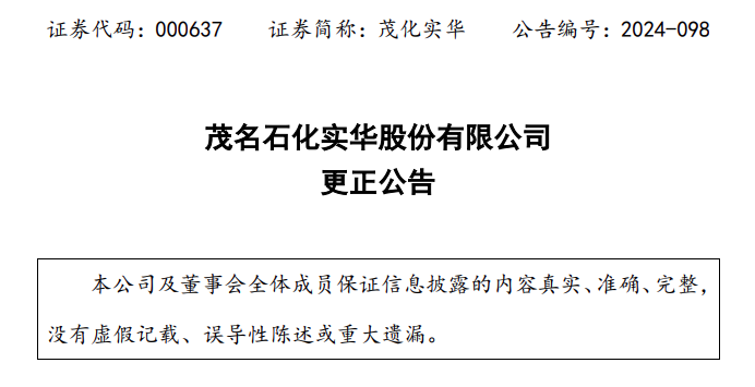 12月27日晚间,茂化实华发布公告披露,由于工作疏忽,导致谢中梁的信息披露与实际情况不一致。实际上,谢中梁早在2021年12月23日就已经受到了陕西证监局的警示函措施。