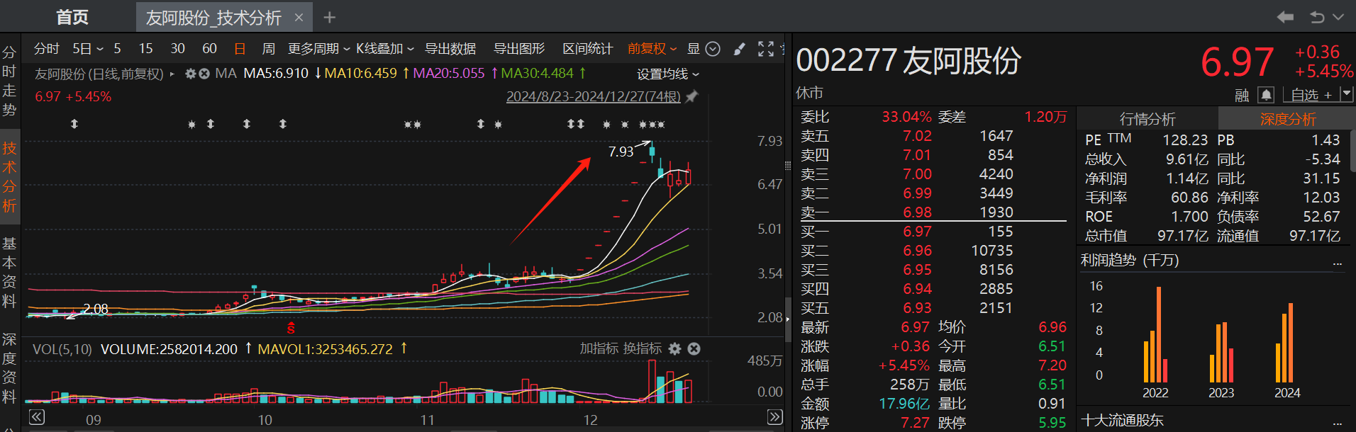 其中,以百货零售为主业的友阿股份自12月1日以来,股价累计最大涨幅达114.9%。该公司拟通过发行股份及支付现金方式收购深圳尚阳通科技股份有限公司100%股权,旨在切入功率半导体领域,打造新的增长极,加速向新质生产力转型,为公司的持续发展注入新动力。详情如下图所示: