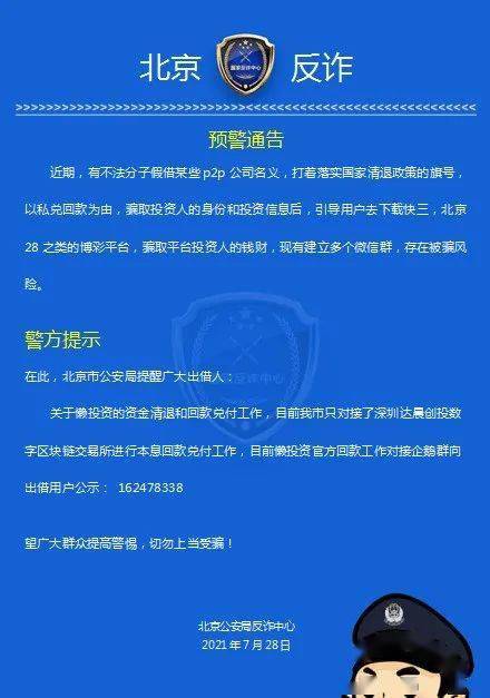北京公安局反诈中心发布预警通告称,关于懒投资的资金清退和回款兑付工作,只有一个企鹅对接群。近期有不法分子利用微信群进行私兑回款诈骗,广大群众需提高警惕。懒投资方面回应称,银监会将督促其尽快完成良性清退,保障出借人权益。