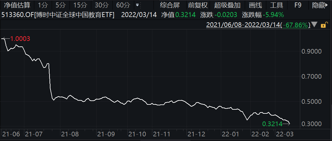 博时中证全球中国教育ETF基金巨亏的根源在于其追踪的成份股股价表现不佳。该基金去年年报的重仓股包括新东方、中公教育、好未来等个股,其中新东方、好未来最新股价较去年高点均回调94%以上。此外,QDII基金集体回调,12只QDII基金净值最大回撤超60%,其中交银中证海外中国互联网净值回撤最高超过73%。