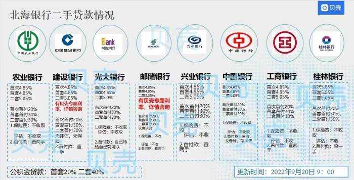 北海银行住房贷款利率情况。 图源:北海房产中介