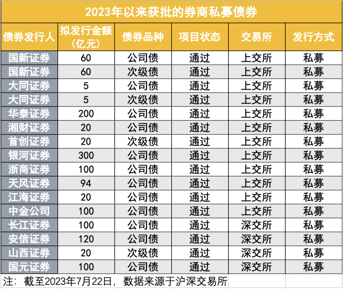 资金投向方面,根据募集说明书,海通证券拟全部用于补充流动资金。华泰证券计划将全部资金用于补充公司运营资金。光大证券拟用于补充流动资金、偿还到期债务。光大证券原计划募集不超过300亿元,最终获批的募资规模缩减了33%。华泰证券今年已获批600亿元公私募债券,其中永续次级债成为新热门品种。