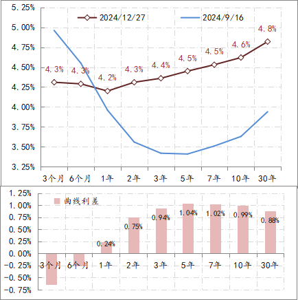 泰拉规则在美联储政策框架中尚未完全淡出。12月会议上,美联储降息25BPs,联邦基金利率降至【4.25%,4.50%】,但最新经济预测(SEP)却释放“鹰派”信号,包括将2025年降息幅度削减50BPs,降息终点水平恢复至3.1%,降息时长延长至2027年,以及中性利率提高至3.0%。这些调整主要基于对未来通胀和就业的预判,联储预计2025年美国PCE涨幅为2.5%,失业率降至4.3%,表明美国经济在“着陆”过程中。