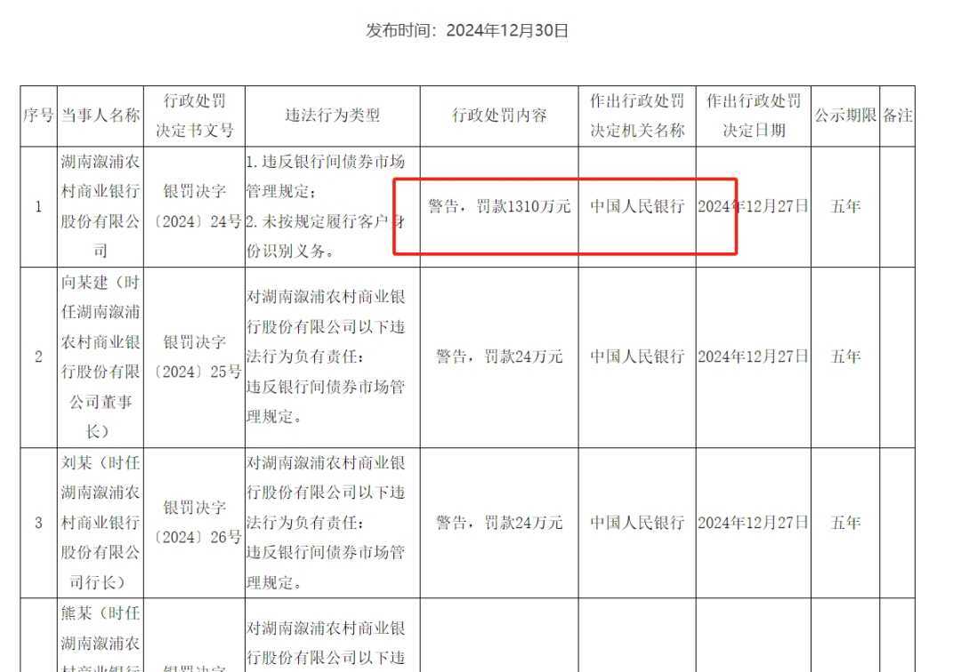 值得注意的是,央行当日在官网公布了三份涉及债券市场违规的罚单,分别对上海东亚期货有限公司、天津信唐货币经纪有限责任公司和湖南溆浦农村商业银行股份有限公司及相关人员进行了处罚,罚款总额超过6200万元。