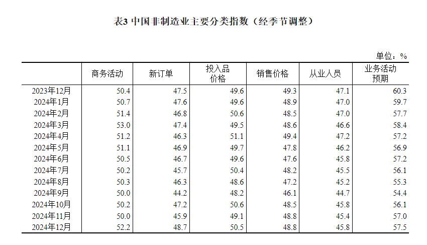 国家统计局发布数据显示,2024年12月制造业采购经理指数(PMI)为50.1%,非制造业商务活动指数和综合PMI产出指数也均有显著回升,我国经济景气水平延续回升向好态势。