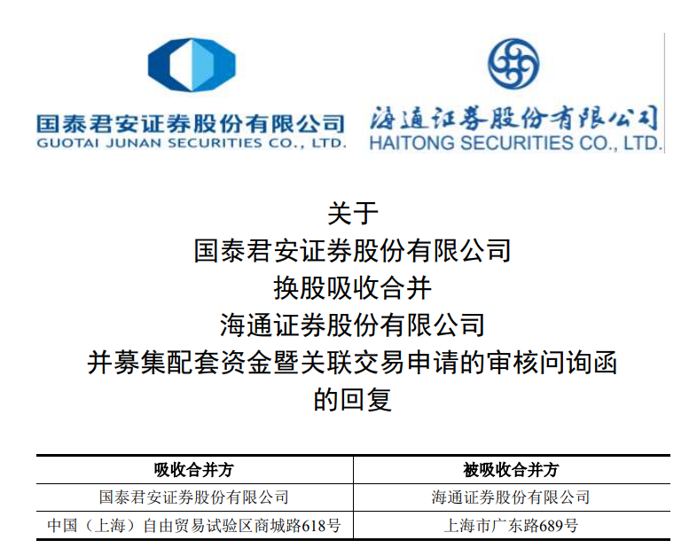 国泰君安与海通证券的合并重组进程再次迈出重要一步。12月30日晚,两家公司同步公布了关于合并重组审核问询的回复报告,详细回应了上交所提出的关于交易目的、整合管控、交易定价、投资者权益保护措施等关键问题,并披露了诸多核心细节。