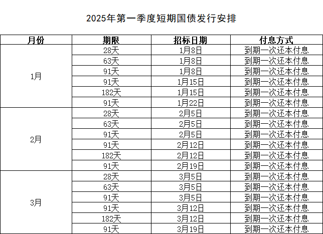 财政部公布2025年第一季度国债发行计划