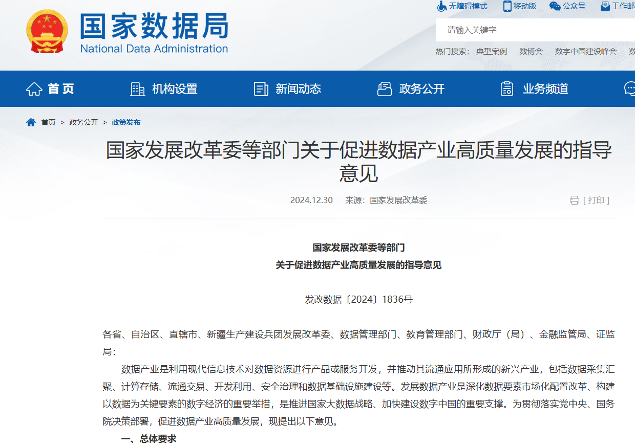 国家数据局召开新闻发布会,介绍促进数据产业高质量发展的指导意见等三份政策文件,旨在形成政策合力,保护企业数据权益,推动数据产业一体化布局,支持中小企业发展。