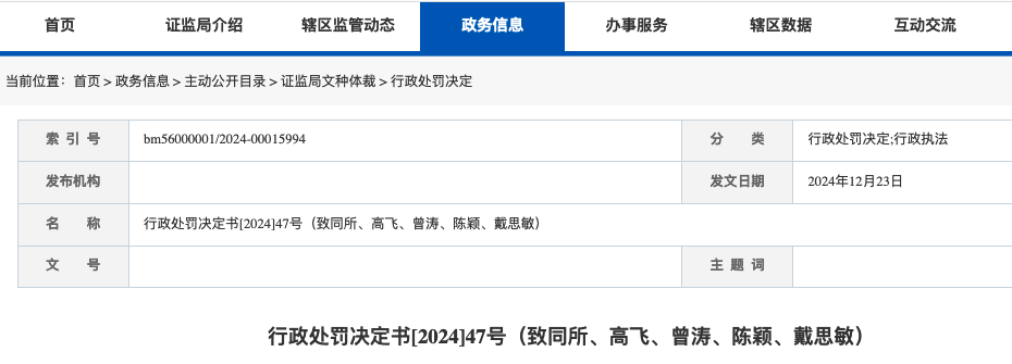 此前,12月23日,证监会浙江监管局也因致同所在方正电机多期年度财务报表审计过程中未勤勉尽责,对其及四名签字注册会计师进行了行政处罚,致同所被罚没超300万元,四名注册会计师也被处以不同金额的罚款。