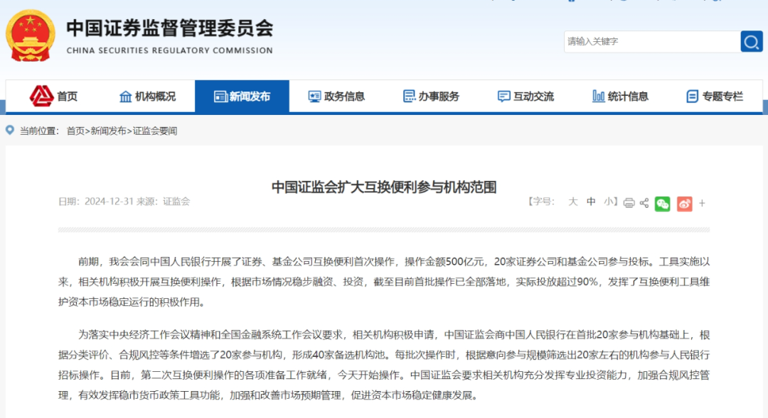 中国证监会扩大互换便利参与机构范围,首批操作成效显著