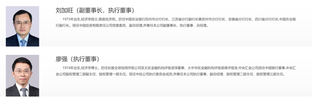 此前,中投公司也发布了董事长任免公告,张青松被任命为中投公司董事长。而在张青松出任中央汇金董事长之前,中央汇金已在9月底进行了人事调整,刘加旺和廖强分别出任中央汇金副董事长、执行董事和总经理、副总经理。