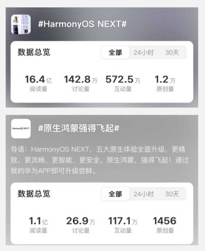 (鸿蒙相关话题的网络讨论度。图源:12月30日新浪微博)