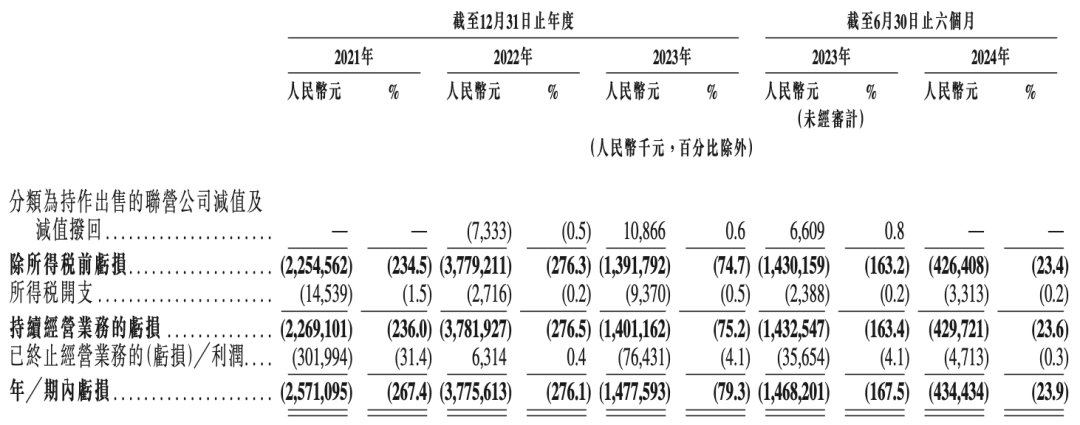 招股书显示,微医控股的持续经营业务收入从2021年的9.62亿元增长至2023年的18.63亿元,其中AI医疗服务收入从2.28亿元增长至10.24亿元。尽管收入持续增长,但公司在过去几年仍处于亏损状态,不过经调整亏损率逐年收窄,从2021年的140.8%降至2023年的27.1%。2024年上半年,公司持续经营业务收入同比大幅增长107.4%,至18.18亿元,经调整亏损率降至7.0%,接近盈利。