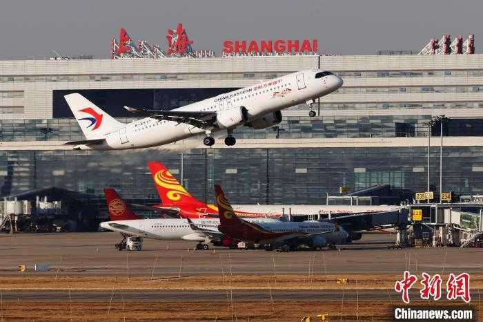东航国产大型客机C919执行的MU721航班从虹桥国际机场顺利起飞,中新网记者殷立勤摄。