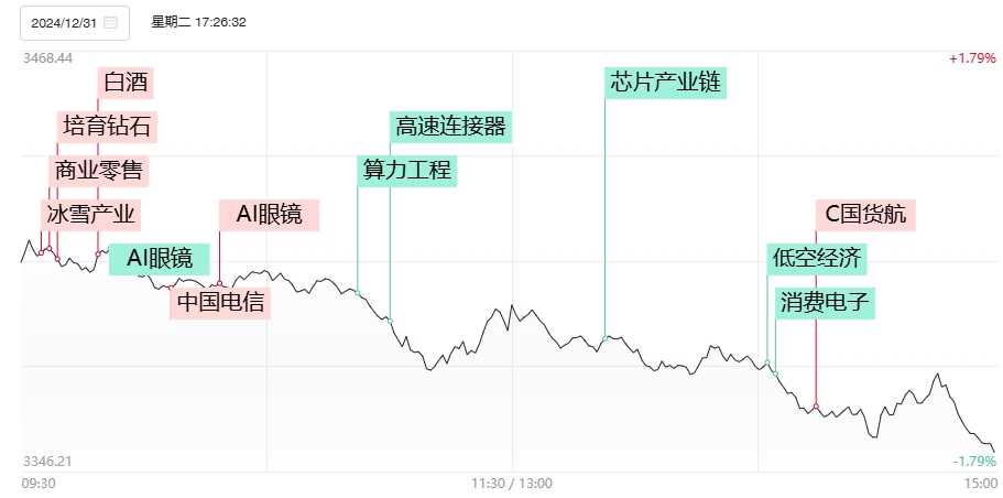 2)市场焦点继续关注即将举行的CES大会。尽管人气股国星光电一度反包涨停,低价股宝泰隆也成功晋级2连板,但AI眼镜板块整体走势仍受到高位股群体回调以及算力方向补跌的双重压力,雷柏科技午后跌停,创维数字、星宸科技等个股也位居跌幅前列。