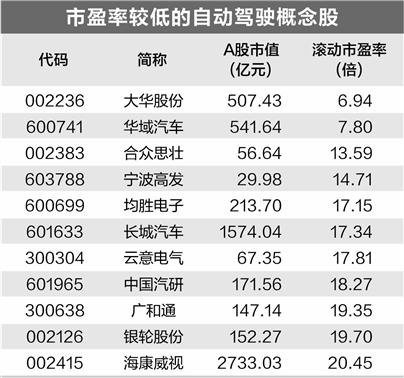 自动驾驶概念股估值分析