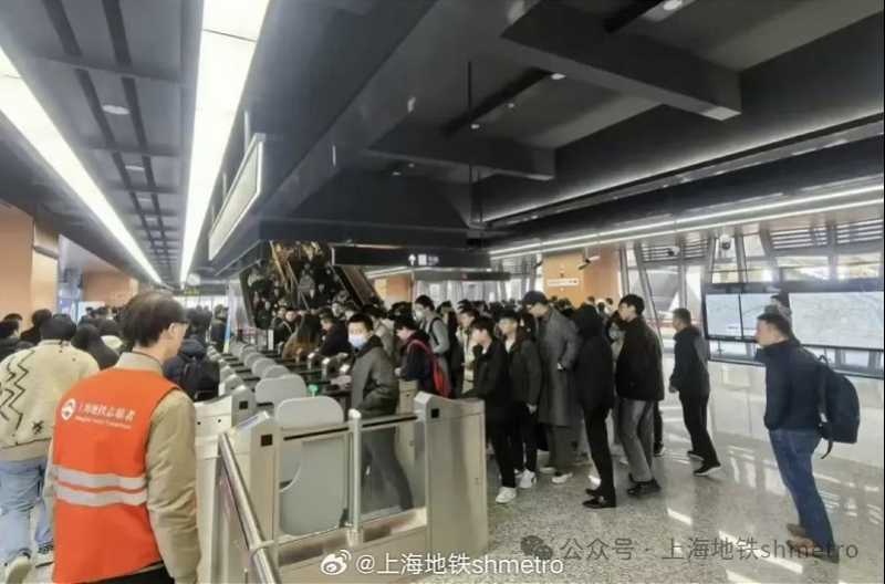 上海地铁早高峰时段的拥挤景象。