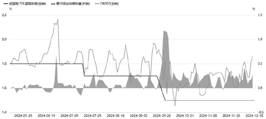 从行情节奏来看,第一阶段利率累计下行约25BP,第二阶段累计下行约20BP,第三阶段累计下行幅度超过40BP。特别是10年期国债收益率在11月中旬后开始加速下行,形成了债市全年上涨最迅速的一轮多头行情。笔者认为,行情变化的缘由可从内外两个层面分析:表面上看,增量货币政策的落地和流动性的宽松为多头行情提供了驱动;但从深层次来看,利率不断下行、接连突破重要点位的根本原因在于市场对经济难题的认知和对政策实施的理解出现了方向性转变。总的来说,2024年四季度利率市场行情由宏观预期和流动性层面的明显转向共同驱动。
