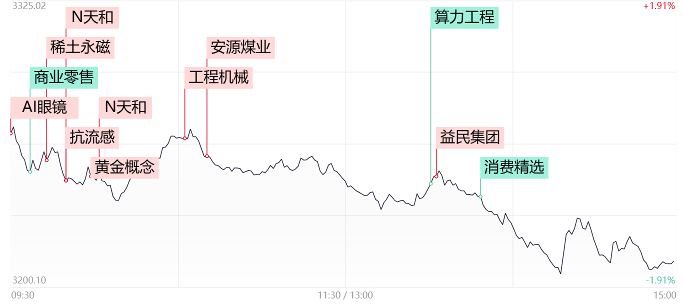 市场全天震荡走低,创业板指创下新低。AI眼镜概念股逆势活跃,成为科技股中的亮点。流感概念股局部活跃,但市场整体亏钱效应显著,个股普遍下跌。短线情绪存在修复需求,但仍需等待指数企稳。