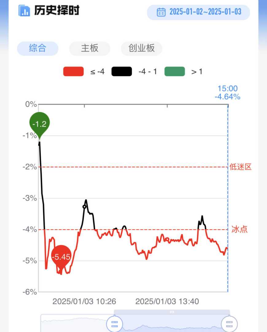 财联社1月3日讯,市场延续跌势,创业板指创下自去年10月8日以来的新低。沪深两市成交额缩减至1.27万亿,较前一交易日减少1287亿。盘面上热点稀缺,个股普遍下跌,超过4700只个股收跌,逾百股跌停,连续三日超4000只个股下跌。AI眼镜概念股一度冲高,国星光电等涨停,流感概念股局部活跃,鲁抗医药涨停。消费股集体调整,来伊份等多股跌停。截至收盘,沪指、深成指、创业板指分别下跌1.57%、1.89%和2.16%。