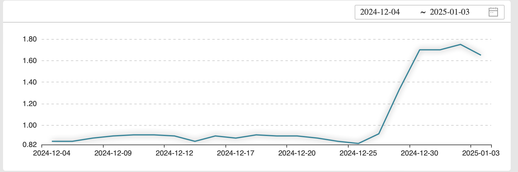 交易走势图进一步揭示,国股行6个月票据利率自去年12月4日0.85%左右的低位持续攀升,至1月3日已报1.65%,环比增幅接近一倍。