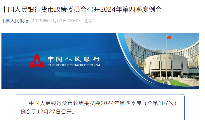 大家好,让我们聚焦央行最新动态。1月3日晚间,央行官微发布消息,中国人民银行货币政策委员会2024年第四季度(总第107次)例会已于12月27日召开。