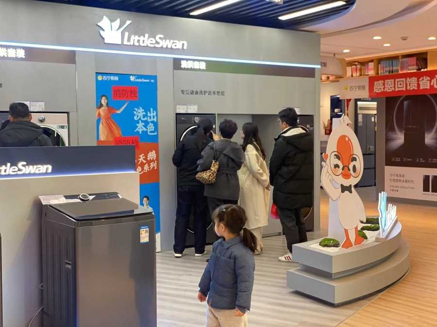 江先生和太太在苏宁易购五角场店听说今年8大类家电产品的以旧换新补贴政策和去年“无缝衔接”,欣喜不已。他们表示,家里的电视机坏了,正好可以换一台大屏彩电,还能享受20%的补贴额度,省下了不少钱。促销员陈女士也表示,2025年继续开展补贴,对消费者和商家来说都是一个重大利好。