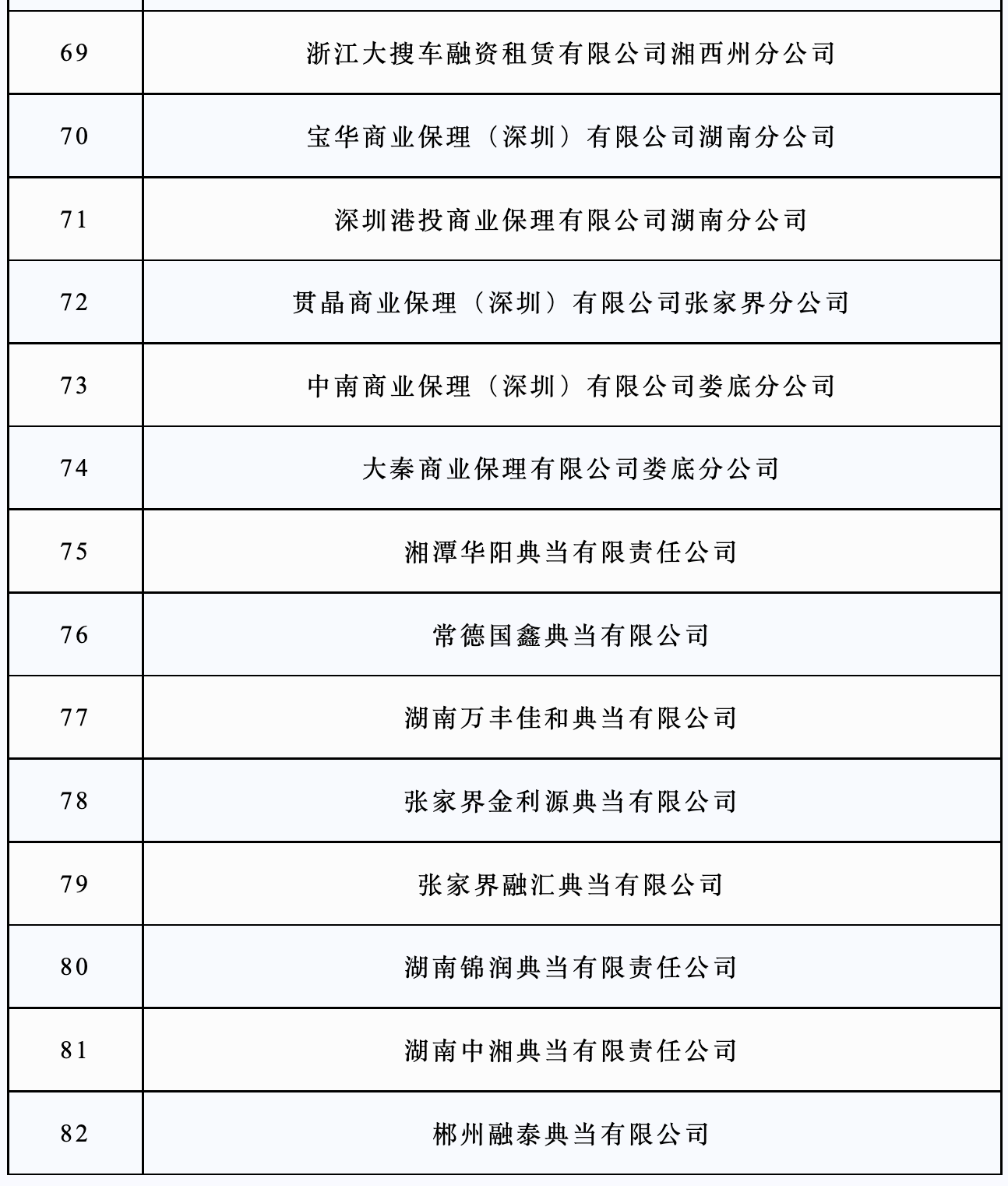 湖南省地方金融管理局公布首批失联及“空壳”地方金融组织名单,共82家机构上榜,包括小额贷款、融资担保等类型,公示期至2025年2月5日。