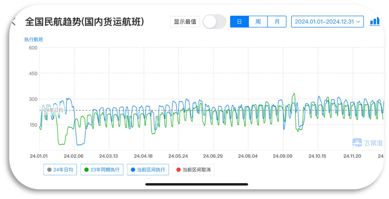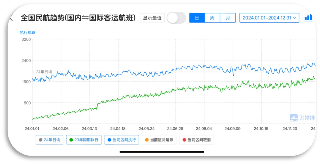 2025年1月6日,飞常准发布2024年民航总体趋势数据,显示我国去年客运与货运航班班次同比均有所增长,显示出民航业的强劲复苏势头。