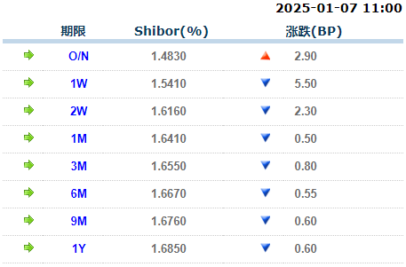 上海银行间同业拆放利率(Shibor)方面,中短期品种的跌势有所放缓,隔夜品种更是出现了小幅上涨。具体而言,隔夜Shibor上涨2.90BP至1.4830%,7天Shibor下跌5.50BP至1.5410%,14天Shibor下跌2.30BP至1.6160%。