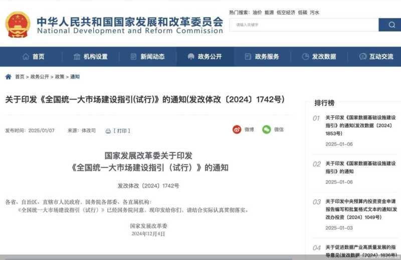 全国统一大市场建设指引发布,推动市场高标准联通与公平竞争