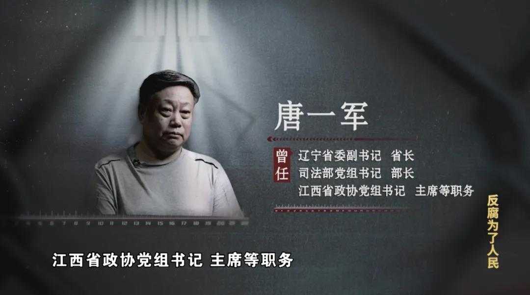 1月7日晚,电视专题片《反腐为了人民》第三集《揭开腐败隐身衣》正式播出,片中江西省政协原党组书记、主席唐一军及其妻子宣敏洁,广东省高州市人民医院原党委书记、院长王茂生出镜忏悔。