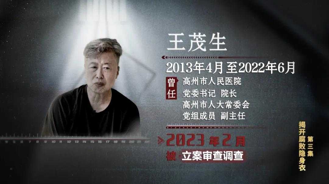 电视专题片《反腐为了人民》揭露江西省政协原党组书记唐一军及其妻子宣敏洁、广东省高州市人民医院原党委书记王茂生利用职权搞新型腐败和隐性腐败,通过虚假市场行为收受贿赂,涉案金额巨大。茂名市纪委监委提出对策建议,推动市卫健部门开展以案促改促治工作,群众负担明显减轻。