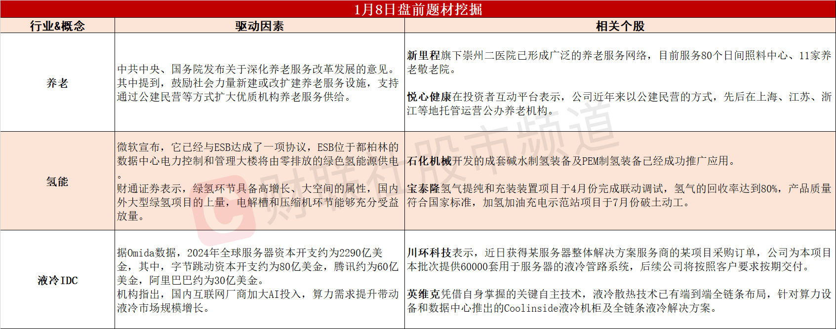 中共中央、国务院近期发布了重磅政策,明确指出银发经济或将成为未来重要的投资机会,引发了市场的广泛关注与热议。与此同时,全球科技巨头微软公司宣布,将采用绿氢为其数据中心供电,此举被视为绿色能源应用的一大突破,机构建议关注上游制备氢气环节,以把握相关投资机会。