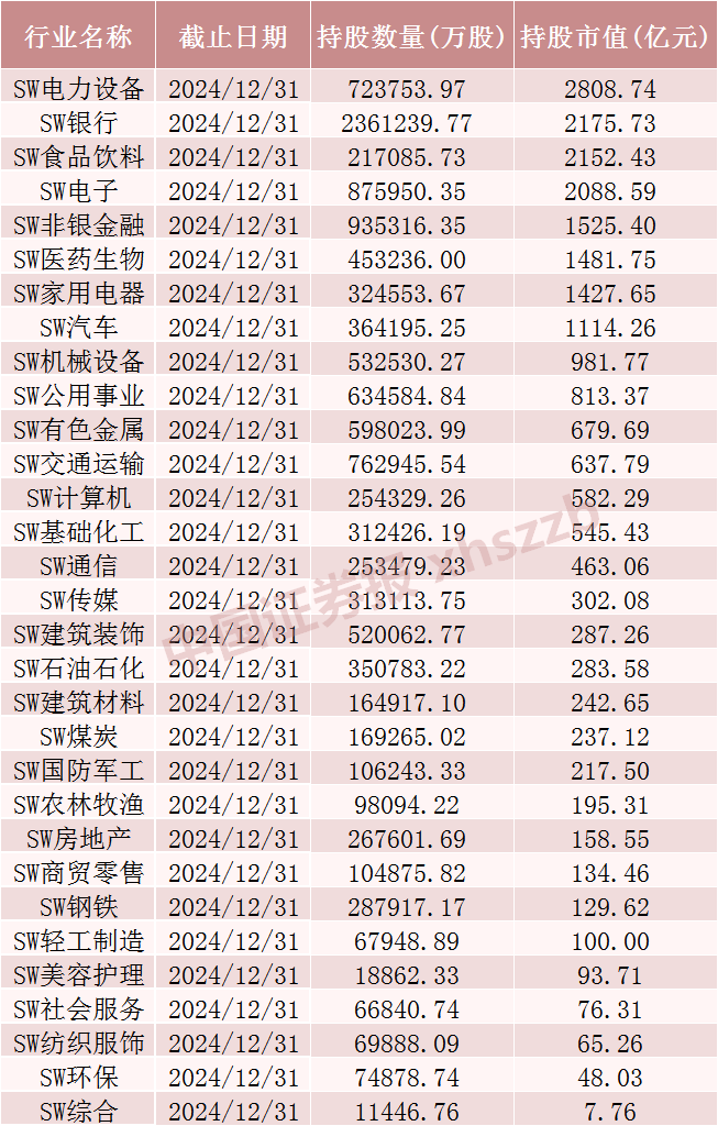 2024年末北向资金持股情况揭晓:电力设备行业成重仓首选