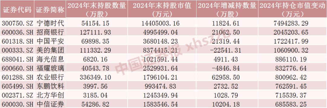 沪深交易所自2024年8月19日起调整了沪(深)港通交易信息披露机制,每季度第五个沪(深)股通交易日会公布上季度末单只证券的沪股通投资者合计持有数量。基于这一机制,2024年末北向资金的持股情况已全面揭晓。