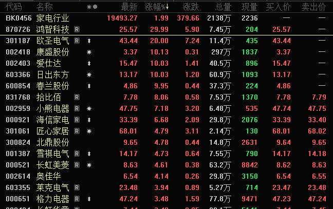家电行业迎内需机遇,科技题材午后大幅拉升
