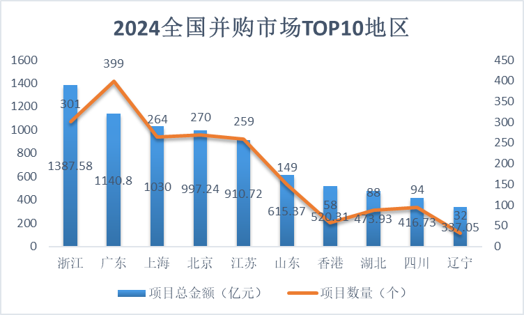 在资本运作方面,广东上市公司并购市场活跃,形式多样。2024年全年,广东已完成并购重组项目399起,交易总价值高达1140.8亿元,数量上位居全国第一。其中,科技赋能、横向并购、境外并购等形式均有典型案例。