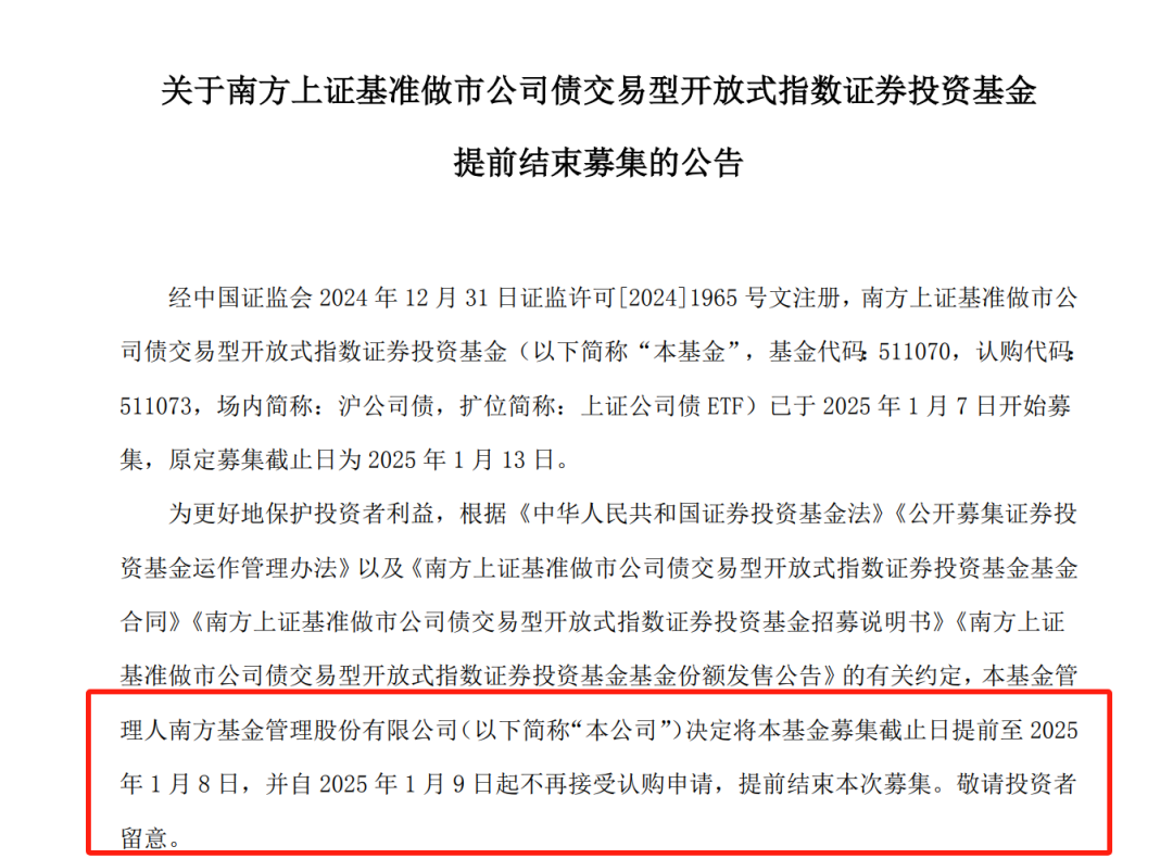 【导读】南方基金宣布其上证基准做市公司债ETF提前结束募集,成为首批8只基准做市信用债ETF中的领头羊。