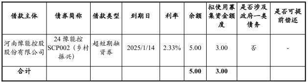 豫能控股成功发行2025年度第一期超短期融资券(乡村振兴),发行规模5亿元,资金用于偿还有息债务和子公司营运资金补充,优化债务结构,增强运营能力。